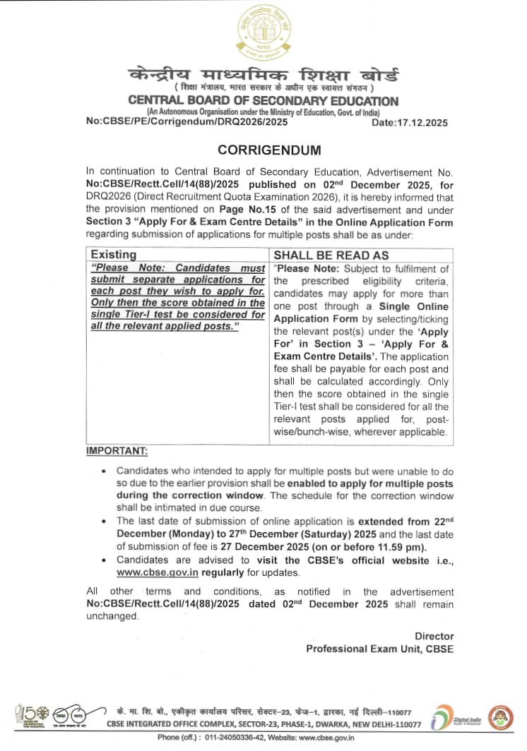 CBSE Recruitment 2025: Apply Online for Group A, B & C Posts