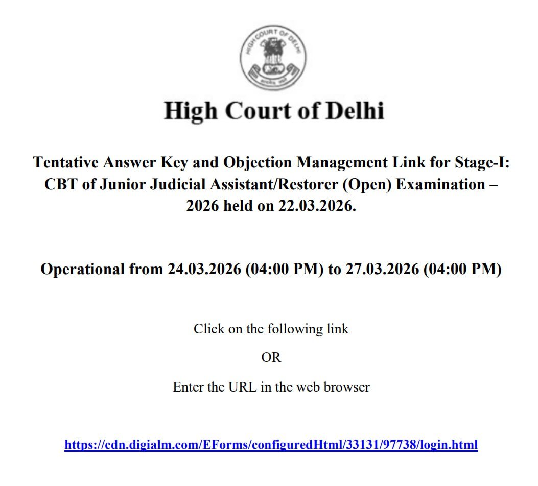 Delhi High Court JJA Recruitment 2026: Answer Key Out, Check Now, Direct Link