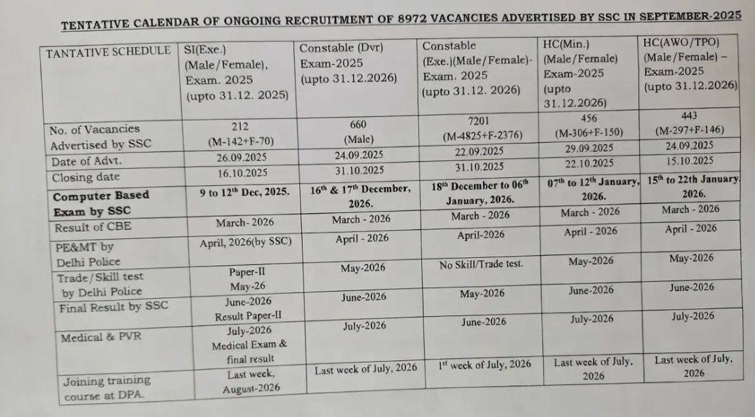 | Tentative Calendar of Ongoing Recruitment in Delhi Police | Calendar |
