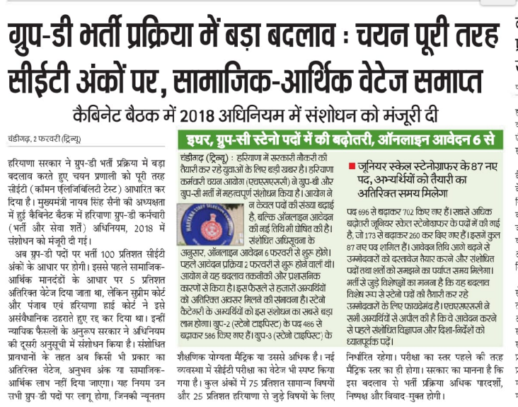 HSSC CET Group D Recruitment 2026: HSSC Group D Recruitment 2026 notification is expected to be released soon by the Haryana Staff Selection Commission for various Group D posts across different government departments in Haryana. This recruitment drive will offer a good opportunity for 10th pass candidates seeking stable government jobs.