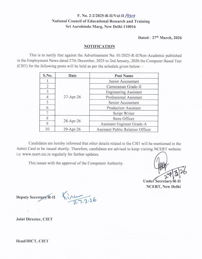 NCERT Non Teaching Recruitment 2025: Various Posts Exam Date Out, Check Now