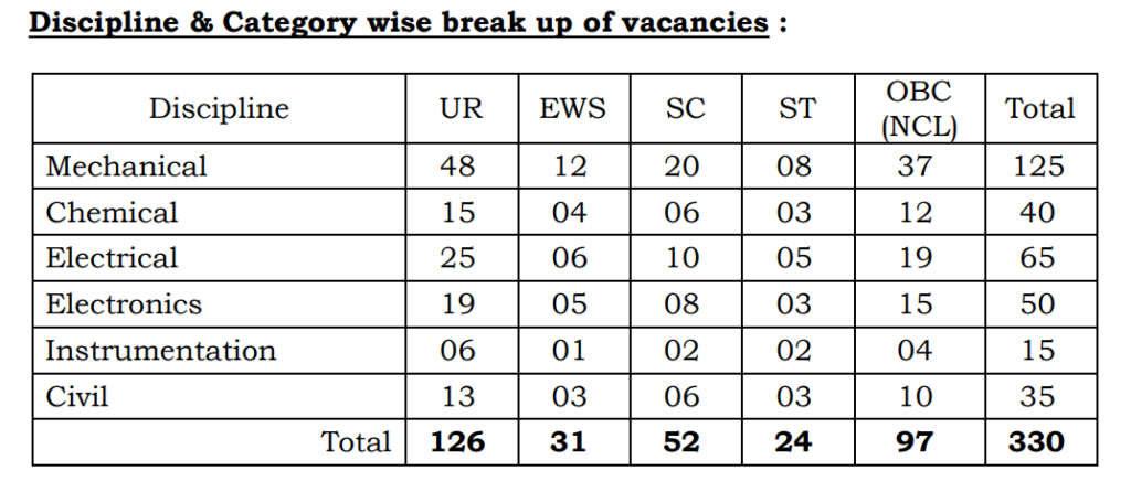 Executive Trainee330Degree/ Diploma in Related Fields + GATE Score