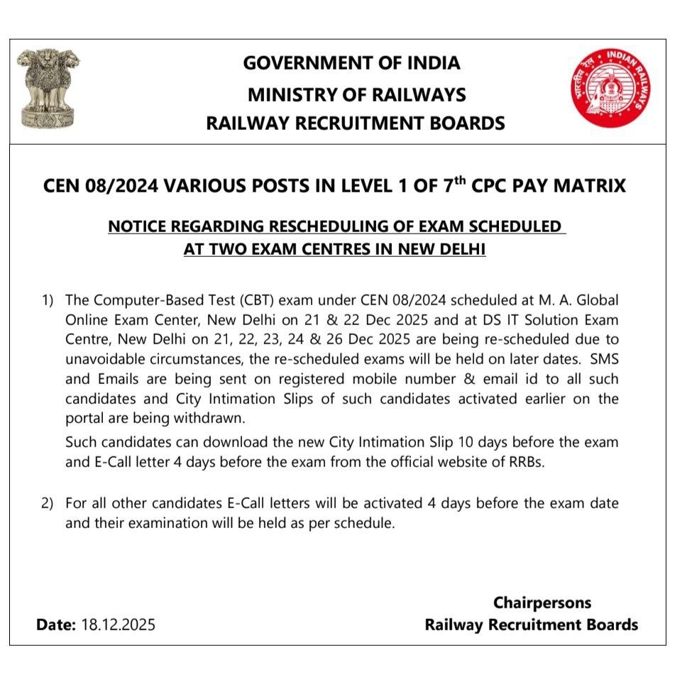 | RRB Group D Exam Date Notice | Notice |