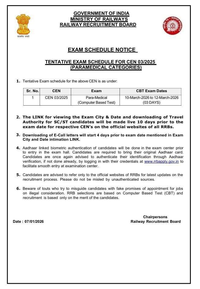 RRB Paramedical Recruitment 2025: Exam Date Out, Check Official Notice