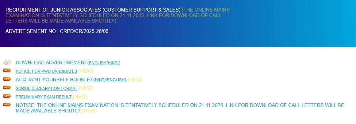 SBI Bank Clerk Recruitment 2025: State Bank of India (SBI) has released its official notification for the recruitment of Junior Associates (Customer Support & Sales) in the clerical cadre. The recruitment is being conducted under Advertisement No. CRPD/CR/2025-26/06. Eligible Indian citizens can apply online from 6th August 2025 to 26th August 2025 for vacancies in one State/UT only. This is a golden opportunity for graduates looking to work with India’s largest public sector bank.